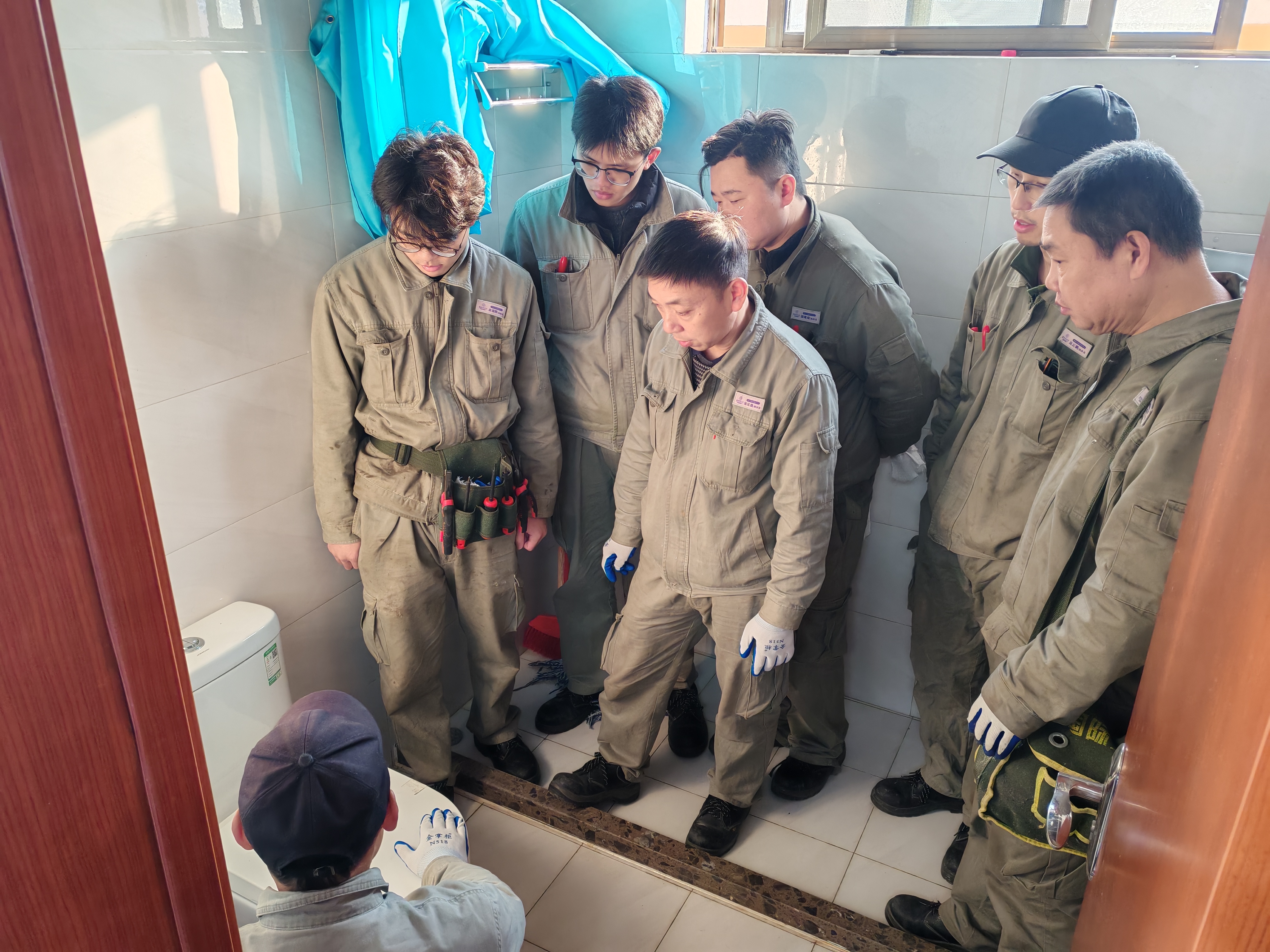 校园场景实战阶段,聚焦楼宇管道堵塞、老化等重难点问题,设置“小便池地漏及下水道堵塞疏通”课题。结合设施使用年限长、故障频发的实际,水工师傅通过真实案例剖析堵塞成因,详解疏通器、高压水枪等工具适配用法及应对策略。参训人员直指故障场景,分组协作开展“诊断——选型——操作”闭环训练,共同研讨顽固堵塞解决方案,提升给排水设施维修的针对性与高效性。